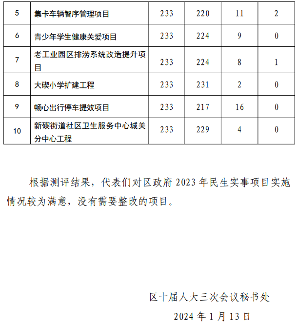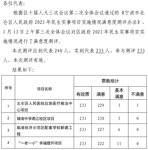 關于寧波市北侖區人民政府2023年民生實事項目實施情況滿意度測評結果的報告