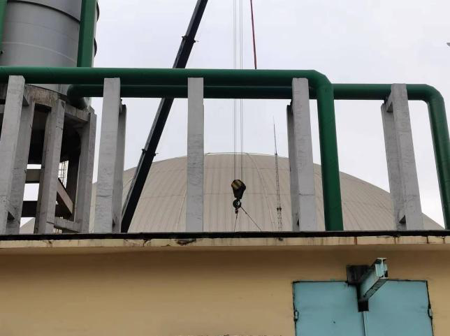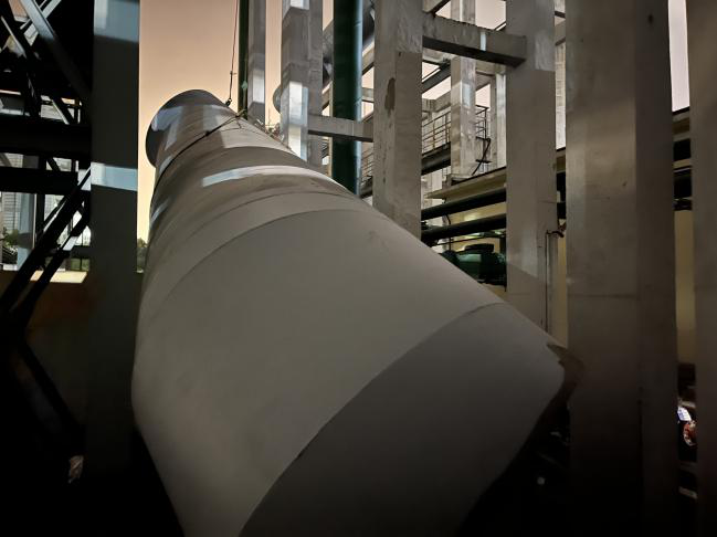 因項目工期延誤,2024年2月以來,大連重工要求百川環(huán)保加快設(shè)備安裝施工進度。4月25日,受百川環(huán)保現(xiàn)場負責(zé)人張科指派,百川環(huán)保施工人員著手實施熄焦塔區(qū)域高位水槽管廊段的除塵管道預(yù)制拼接作業(yè)。4月26日下午5時許,該處除塵管道(彎頭)的地面拼接預(yù)制工作完成,百川環(huán)保指吊人員劉東明遂組織實施吊裝作業(yè),擬將該段管道A端穿過高位水槽下方的混凝土結(jié)構(gòu)柱,再將接口與事先安裝完畢的管道進行焊接固定。吊裝作業(yè)使用汽車起重機(1號汽車吊,司機孫海港),作業(yè)時施工人員將管道A、B兩端掛耳通過鋼絲繩分別掛在1號汽車吊的主鉤與副鉤上,孫海港操作吊機將管道起吊至與水塔下方管廊水平位置,離地高度約11米。因需要將管道A端斜向插入高位水槽下方,在劉東明的指揮下,孫海港操作吊機不斷調(diào)整管道位置,至晚間7時許,已將管道A端擱架于高位水槽下方混凝土廊架上,但卡滯在進水管和結(jié)構(gòu)柱之間,吊裝作業(yè)遂暫時中止,相關(guān)人員離開現(xiàn)場用餐。