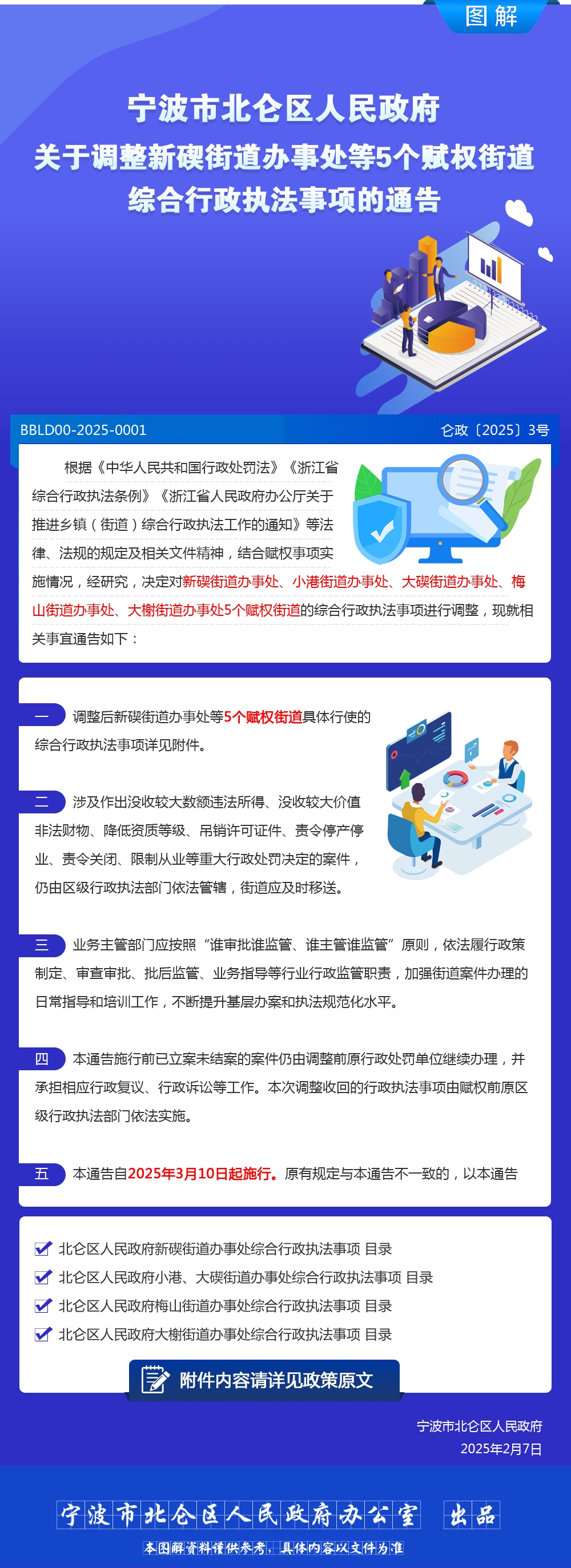 圖解《寧波市北侖區人民政府關于調整新碶街道辦事處等5個賦權街道綜合行政執法事項的通告》